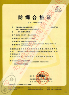 榮譽資質-電加熱防爆合格證