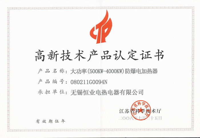 下一篇: 單端PTC礦物絕緣加熱棒高新技術產品認定證書