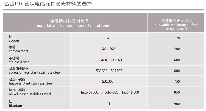 | 合金PTC管狀電熱元件 |