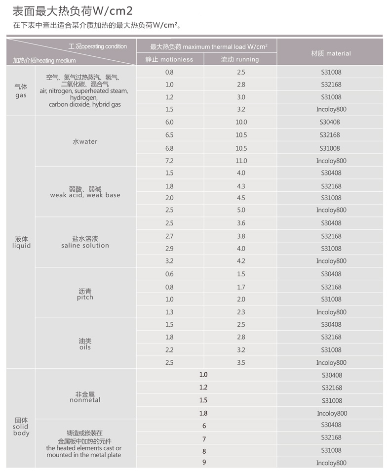 合金PTC管狀電熱元件采用高值PTC電熱合金作為發熱材料,不僅具有一般管狀電熱元件的一切優點,而且元件本身同時具有發熱、耐溫、調功性能,同條件下比一般電熱元件使用壽命長3~5倍,節能效果顯著。外形、結構與一般管狀元件完全相同,發熱材料由本公司獨創,產品獲國家科技創新基金,取得了國家防爆合格證,防爆等級為ExeⅡC Gb。