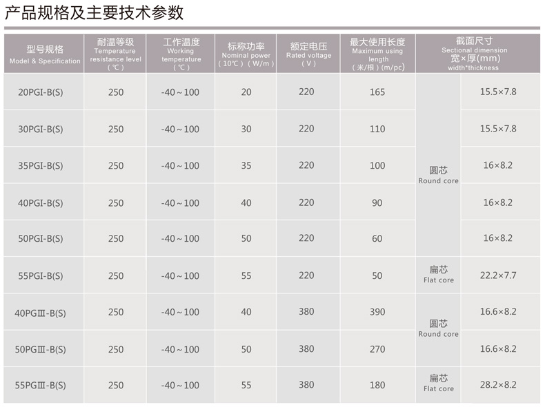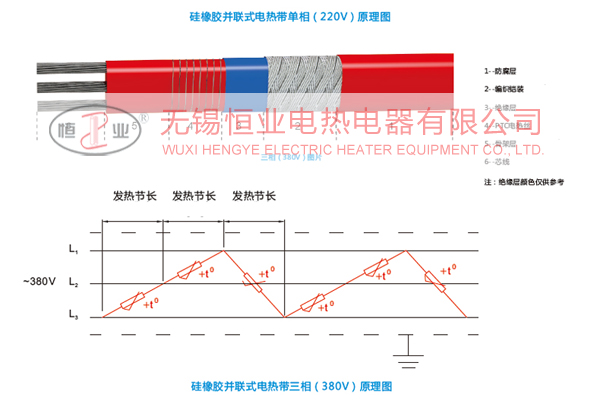 產品簡介: 硅橡膠并聯式電熱帶又稱“高值PTC硅橡膠電熱帶”,是采用高溫阻燃硅橡膠作為絕緣的一種新型電伴熱帶,它電氣絕緣高,柔軟性、彎曲性好,特別適用于各種復雜的管道和閥門等的防凝、防凍,是一種理想的伴熱產品。尤其比重只有氟塑料的一半,價位只有氟塑料的1 / 4~1 / 3, 以極大的優勢取代氟塑料在工程中的應用。高值PTC硅橡膠電熱帶在與氟塑料電熱帶使用效果相同的情況下,降低成本,促進了市場推廣。 本公司生產的高值PTC合金硅橡膠電熱帶曾獲得國家實用新型專利證書,專利類型:實用新型專利,專利號:ZL03203202.1,證書號:第602708號,并列為國家科技型企業技術創新基金和火炬計劃。 工作原理: 硅橡膠并聯式電熱帶的電源母線為二根或三根平行絕緣銅絞線, 在硅橡膠骨架層上纏繞P T C合金絲, 并將PTC合金電熱絲每隔一定距離相間交叉即“發熱節長"與母線連接,形成連續并聯電阻,母線通電后,各并聯電阻發熱,因而形成一條連續的電熱帶。硅橡膠并聯式電熱帶每米有一定標稱功率,使用的電熱帶越長,輸出的總功率越大,但由于采用PTC合金絲作為發熱元件,因此,其本身具有隨溫度變化而調節輸出功率的特性,且電熱帶采用硅橡膠作為絕緣材料,因此,帶體柔軟,便于安裝。該電熱帶在現場能按實際需要長度任意剪切。 技術參數: ◆ 工作電壓:≤380V 50Hz/60Hz; ◆ 導電芯線材質:銅絞線; ◆ 發熱材料:PTC合金、鎳鉻合金; ◆ 工作溫度:-40~100℃; ◆ 耐溫等級:250℃; ◆ 防爆等級:ExeⅡT4; ◆ 絕緣材料:阻燃硅橡膠; ◆ 防腐層:F46氟塑料。 特點: ◆ 具有明顯的自動調溫功能,節能顯著,綜合熱效率高,但最大長度有一定限制; ◆ 散熱面較大,發熱功率均勻; ◆ 可任意沿長度方向剪切; ◆ 性能穩定,功率誤差極小; ◆ 結構柔軟,可在敷設時任意彎曲,給復雜管道的施工帶來極大便利; ◆ 具有良好的電氣性能; ◆ 生產成本低,價格便宜; ◆ 安全可靠,配套防爆附件可適用于Ⅱ區防爆場所。